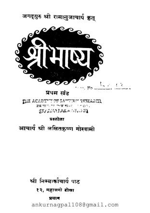 Sri Bhashyam Vol-1 Hindi | श्रीभाष्यम् भाग -१ हिन्दी PDF