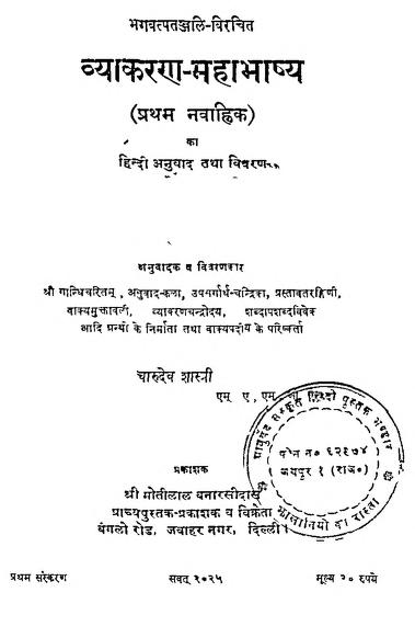 Vyakaran Mahabhashyam ( Pratham Navanhik ) Translated in Hindi | व्याकरण महाभाष्यम् प्रथम नवाह्निकम् हिन्दी अनुवाद सहित PDF